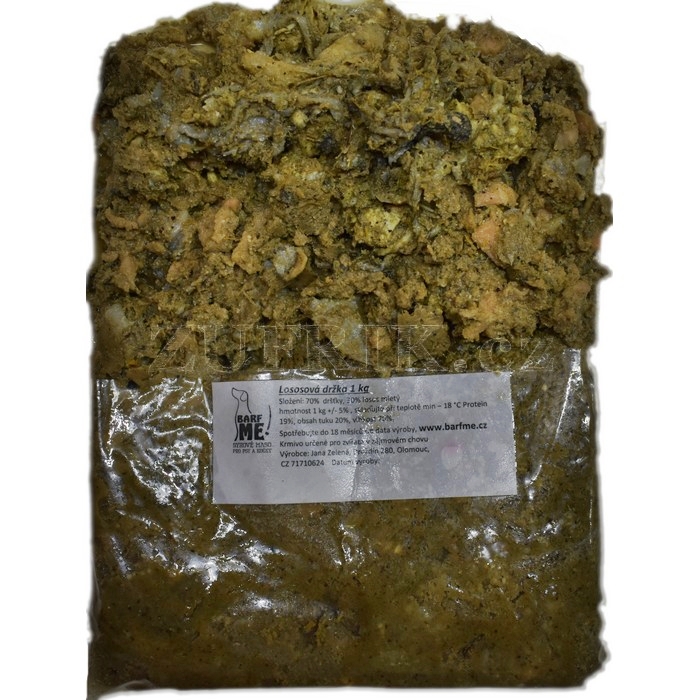 hovězí knihy částečně prané 70 %. losos mletý 30 %